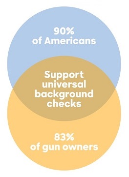If you try to read this as a Venn diagram, a big problem is to figure out what the labels attach to. For instance, the middle, football-shaped overlap section seems to be labelled "Support universal background checks". However, if that's the case then the two crescent-shaped sections are labelled "90% of Americans" and "83% of gun owners", which would seem to indicate that only 10% of Americans and 17% of gun owners support universal background checks. Given what we know about Hillary Clinton's political position on such checks, this seems unlikely to be a message she would repeat. An alternative interpretation is that the "90% of Americans" and "83% of gun owners" labels attach to the two circles as wholes, so that the overlap area represents American gun owners, but then where did the remaining 10% of Americans and 17% of gun owners go to? Also, is Clinton really concerned about non-American gun owners' positions on background checks?