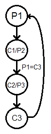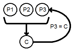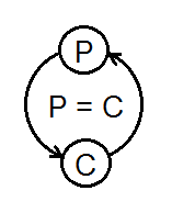 The simplest type of circular argument is an argument with a single premiss that is the same as its conclusion―see the first diagram to the right, where "P" stands for "premiss" and "C" for "conclusion" and the arrows indicate the direction of reasoning. Since P and C are the same proposition, we can also represent this argument with the second diagram, which shows that this is the smallest circle one can reason in.